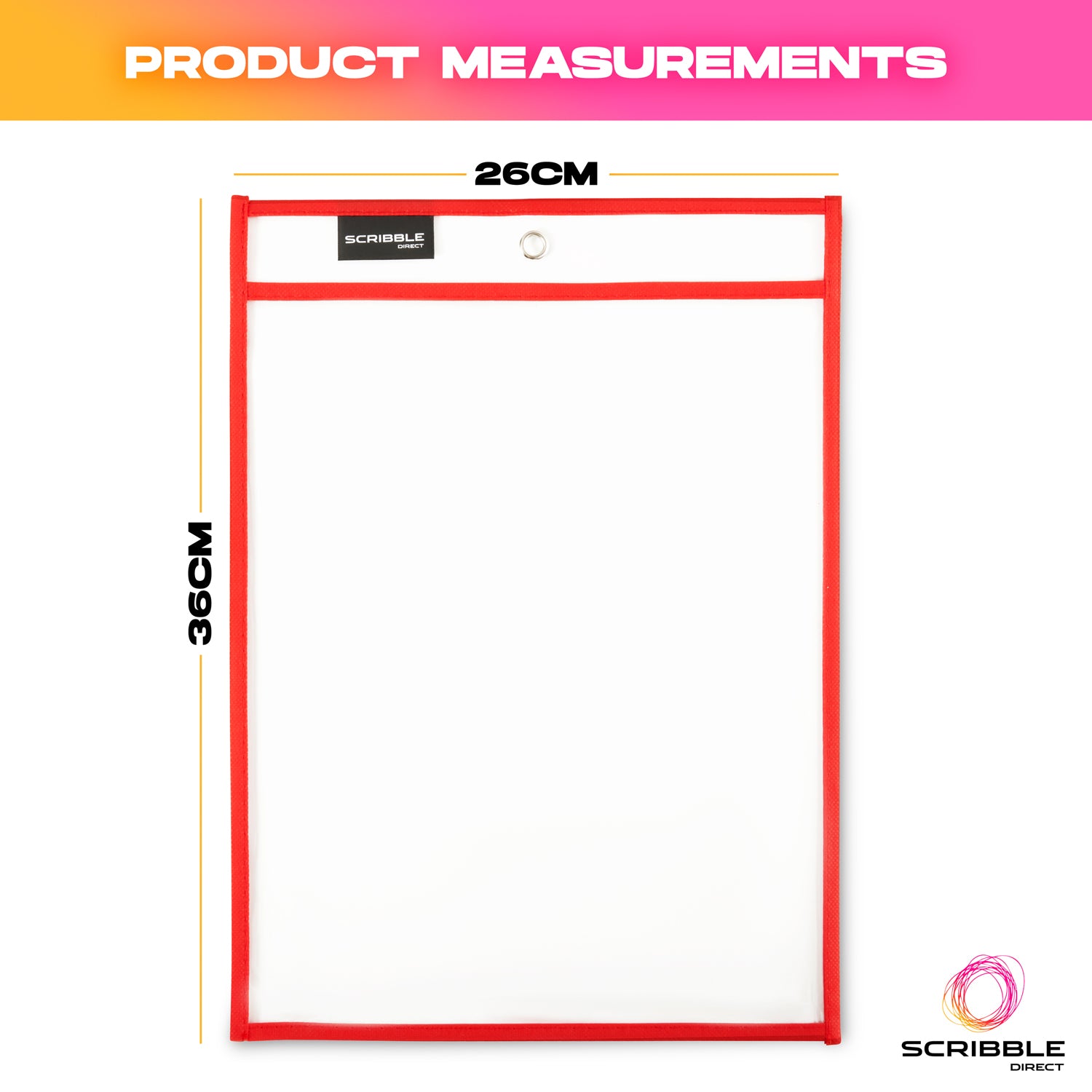 🌿【Simple to use】- Scribble dry erase sleeves have a simple loading design. Paper simply slides into the oversize pocket from the top. Our clear pockets have an internal dimension of 22.9 x 30.5 cm (standard A4 size) meaning it can hold a variety of different paper sizes. To clean, simply wipe with a soft cloth.